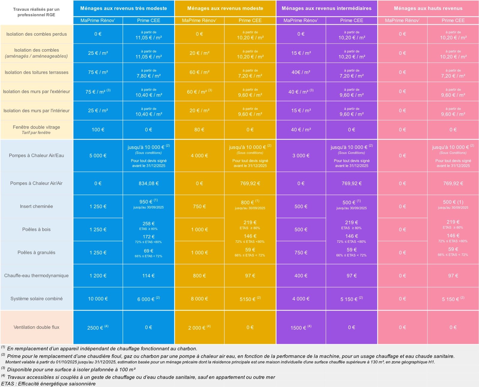 Pour les mêmes travaux, MaPrimeRénov’ peut se cumuler avec les aides versées au titre des Certificats d’Économies d’Énergie (CEE) et les aides locales.